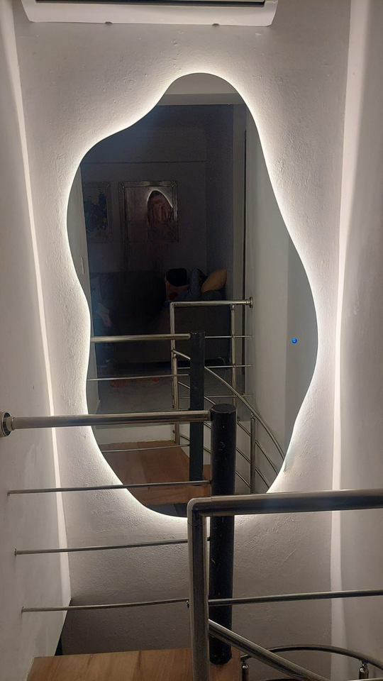 Las luces LED están colocadas detrás del espejo, creando un efecto de halo que añade profundidad y un toque sofisticado.